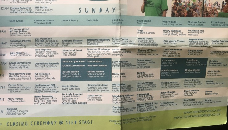 The Hawkwood Seed Festival is a bi annual festival of ideas in Gloucester and has the most impressive list of speakers and thinkers in a gentle intimate environment in which everyone feels included. Most of the speakers stay for the weekend and get involved in each others talks, the children play freely with dressing up clothes and hay bales and the zero waste cafes provide delicious home grown food. It was idyllic for anyone who wants to be challenged and inspired.