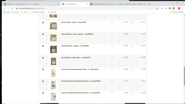 Suma is an ethical food cooperative that is a great company to support, and below are some sample products and prices for you to see . . . . Be aware that these are the expensive organic products.