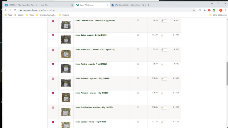 We need to make another order for products for the refill station this week and we wondered if anyone would like to take advantage of purchasing fruit and nuts for Christmas or anything else in bulk. We find that it reduces the price of buying organic products, and on non-organic the savings are good too.