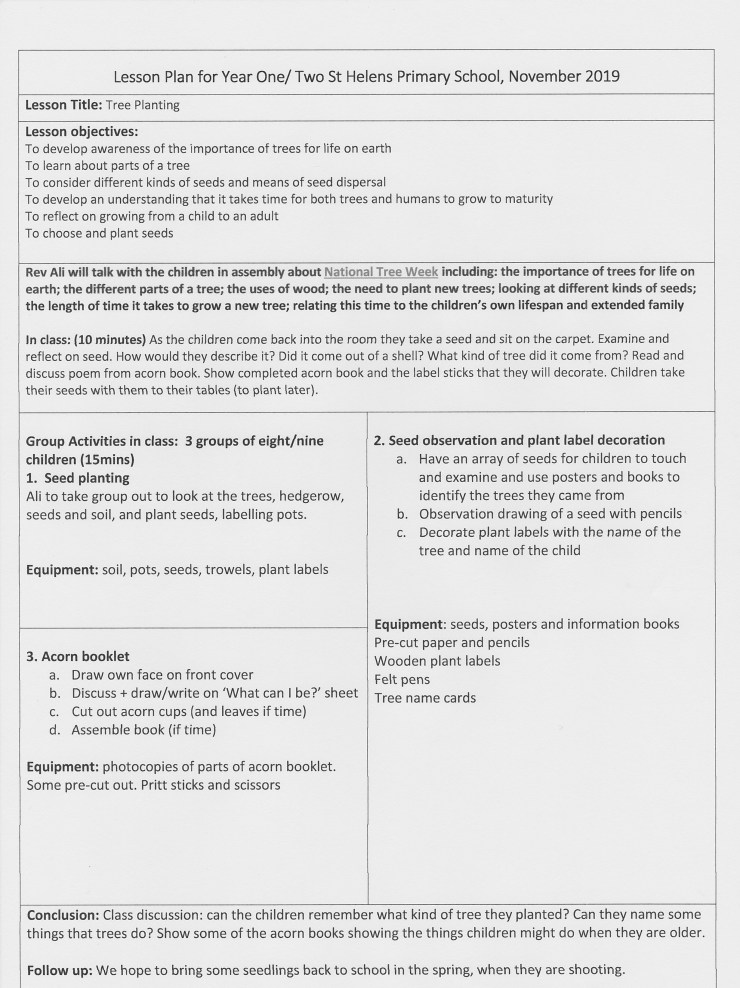 We had such a lovely time with the children of St Helens school this week, planting trees. It has been a steep learning curve for us all, an exercise in quick learning for the team. We have learnt a lot about trees and planting the seeds, we have had to have a long view and create a convenient place to protect them and grow them on. Thanks go to all the team: Helen, Rose, Liz and Fiona. It was a huge effort and I think that we really do have a package to offer other schools and to repeat with other children next year. For me . . .very much not a teacher . . . it was a chance to see the experts at work and to get dirty in the rain, which I very much enjoy.