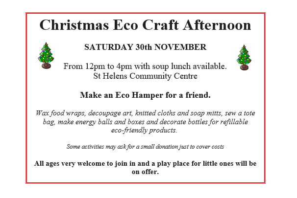 We now invite you to rethink your Christmas list and consider making some environmentally friendly gifts to go under the tree this year. Tomorrow afternoon there is a chance to have a go at making a whole range of useful gifts for friends and family. Lunch is provided!