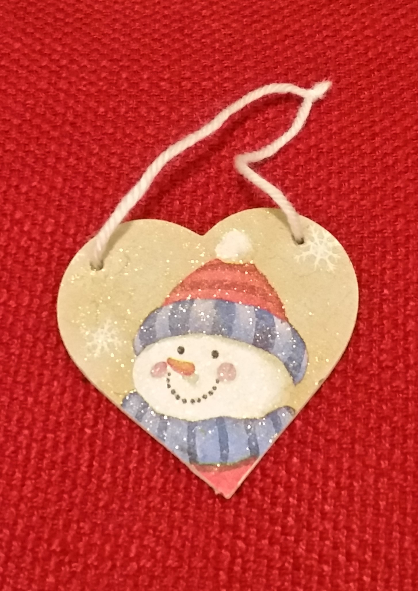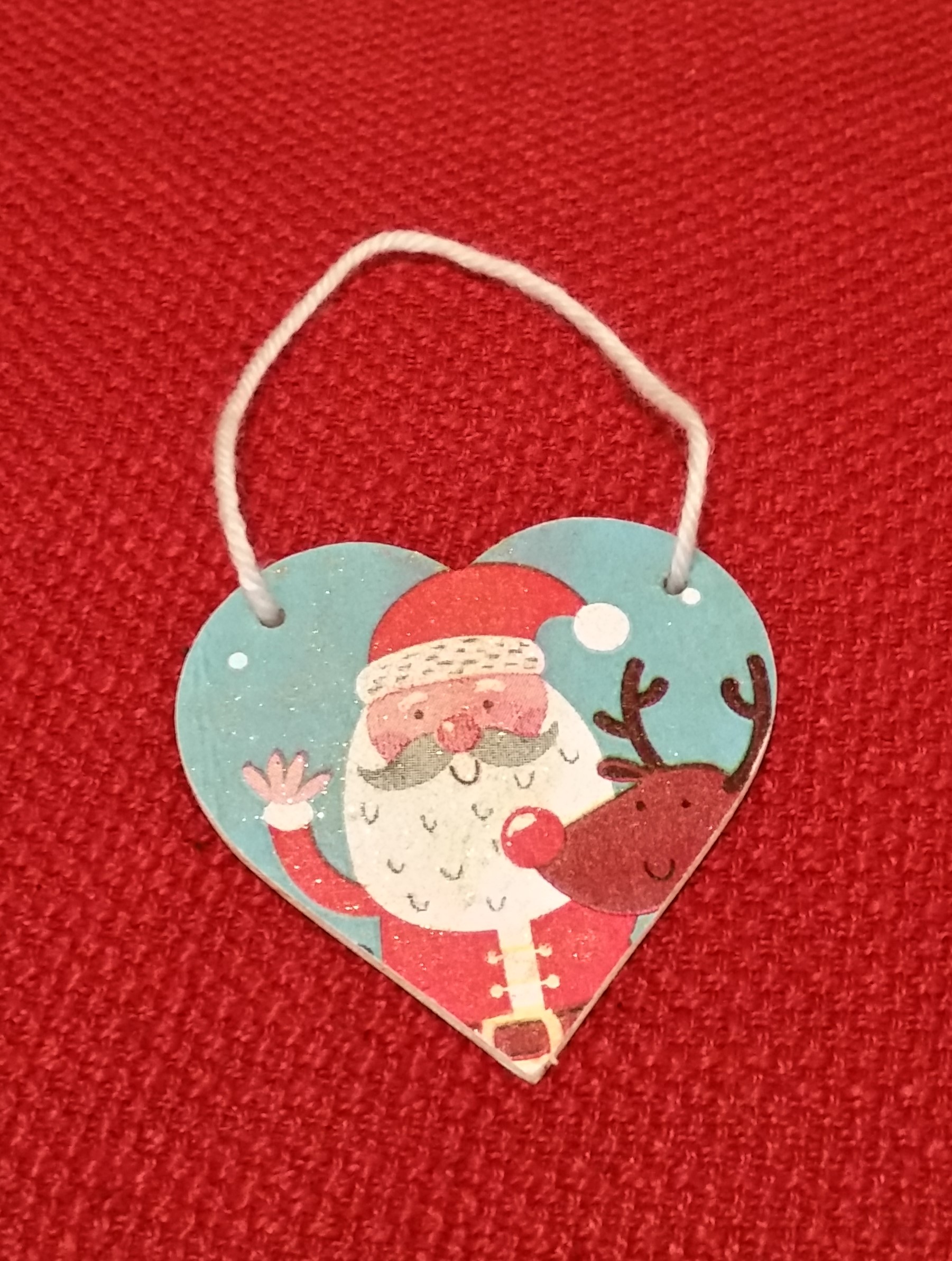 A lovely idea for re-purposing old Christmas napkins was to make them into decorative tree ornaments. The top layer only of a three-ply napkin was cut out and glued onto a wooden heart. It was dried with a hairdryer and the paper edges carefully filed off. It was sprayed with glitter spray to finish off. A great alternative to plastic tree ornaments!
