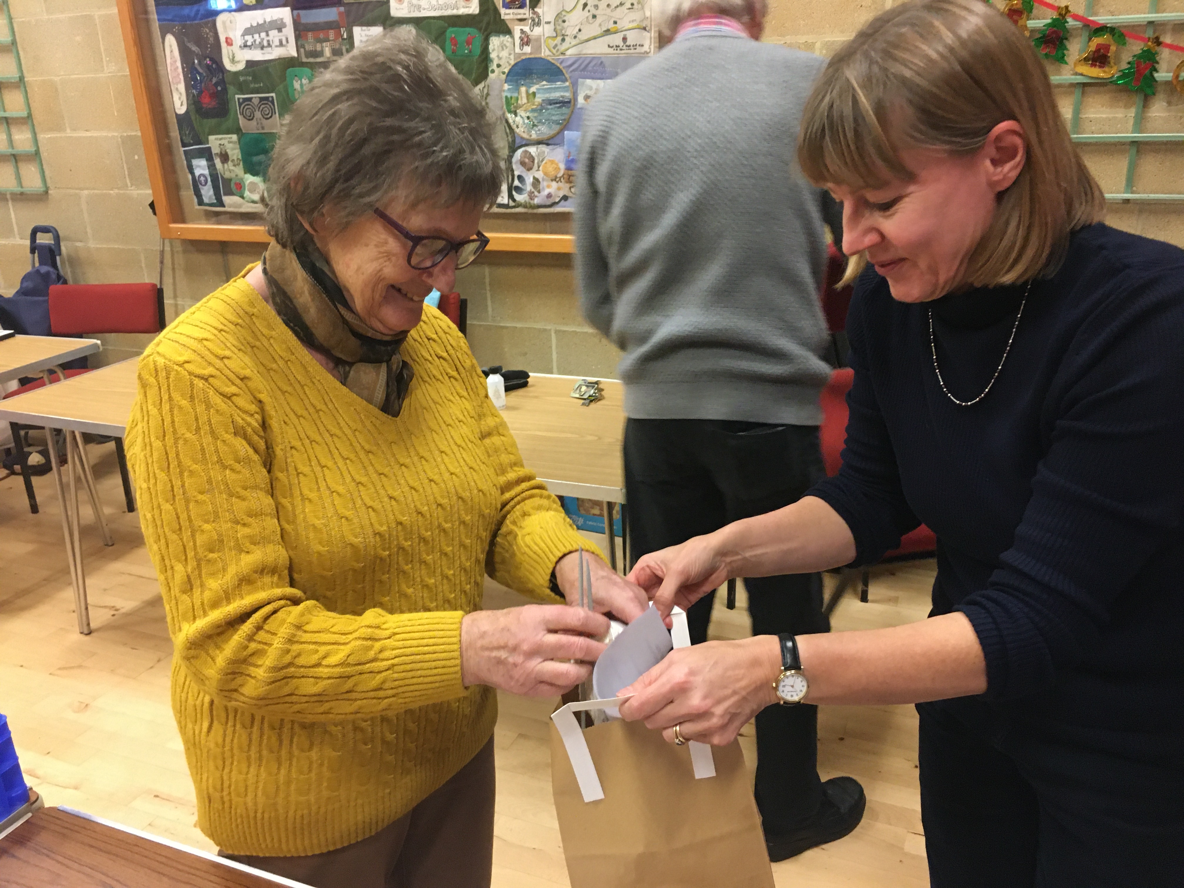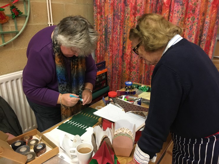 Thank also to Paul and Mary for setting everything up and getting us organised, to Liz for making endless cups of tea and serving lunch,to Ali and Mary for proving the soup and apple cake, and to everyone who contributed. We’re hoping to have another craft day in February, so watch this space! And Merry Eco-Christmas!