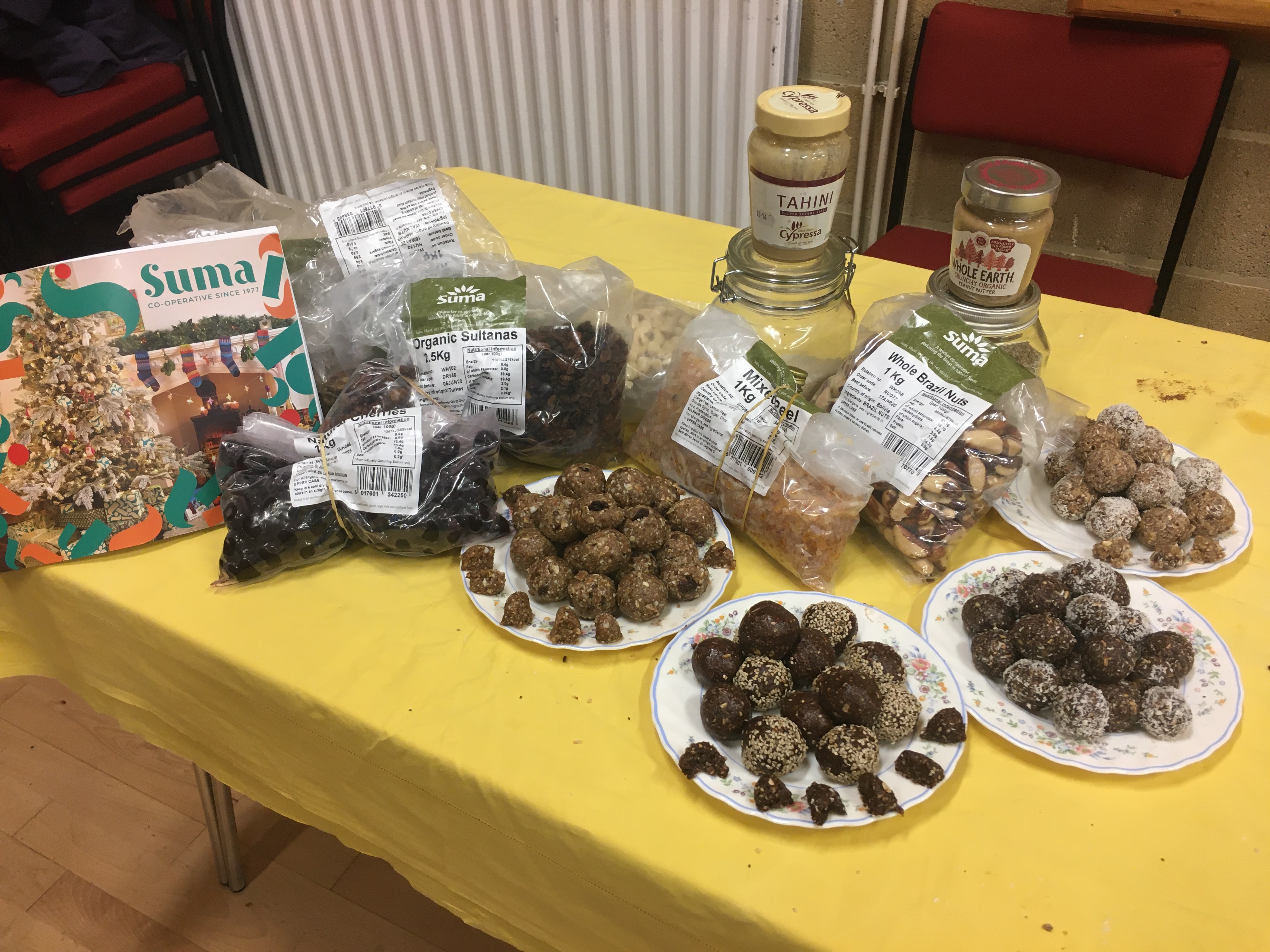 In Eco Church we promote the use of LOAF foods: local, organic, animal friendly and fairly traded. Ali’s energy balls ticked a lot of these boxes, being vegan, fairly traded and organic. She sourced the ingredients on a wholesale order from ethical retail cooperative, Suma. (These orders are open to the congregation, so let Ali know if you want to order in bulk at wholesale prices.) She experimented with different combinations of ingredients and produced some really delicious treats. Thank you, Ali!