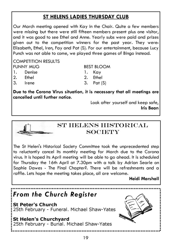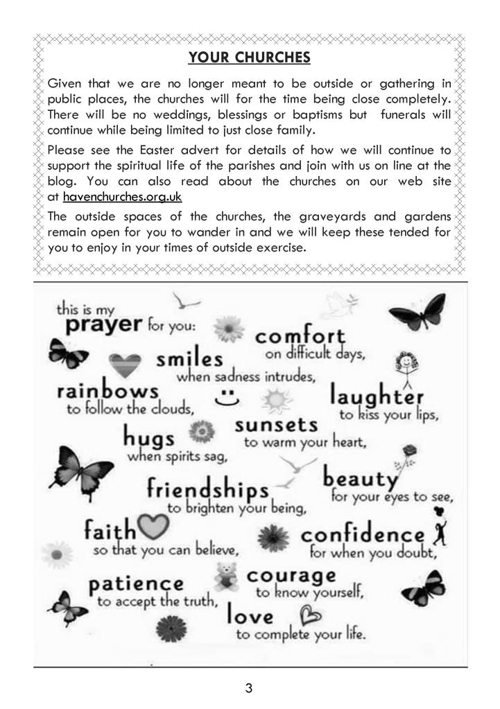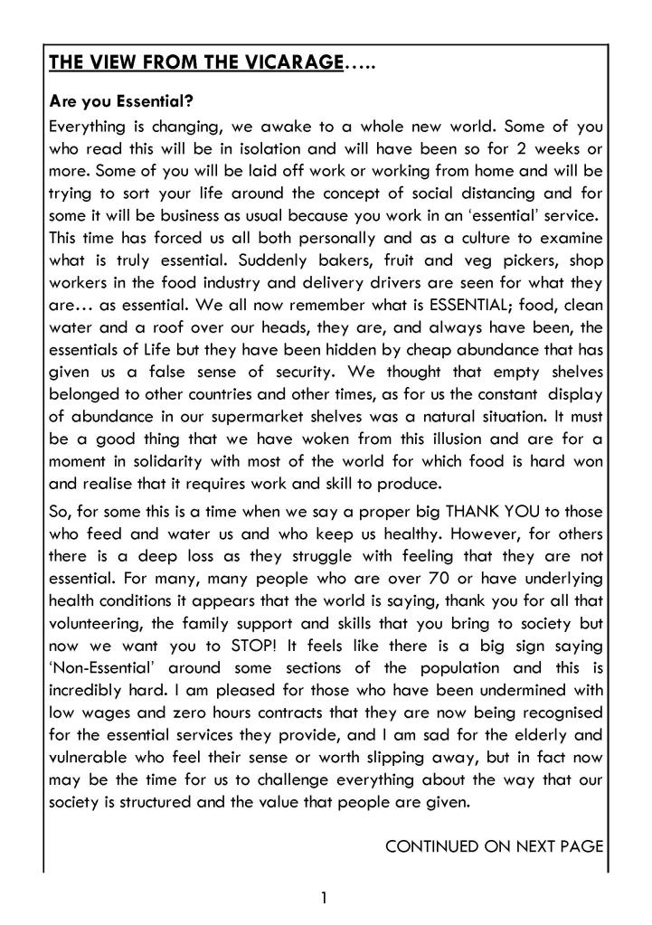 Extraordinary times call for extraordinary measures! Thanks to all the hard work of Paul, Mary and Sue… and of course all our lovely contributors we have produced the Parish News in record time and it is ready to go out tomorrow (Friday). Because many of our volunteer deliverers are unable to do it this time , much to their dismay, we have enlisted the help of the newly formed groups of volunteers who are helping to keep our villages connected with deliveries of food and essentials.