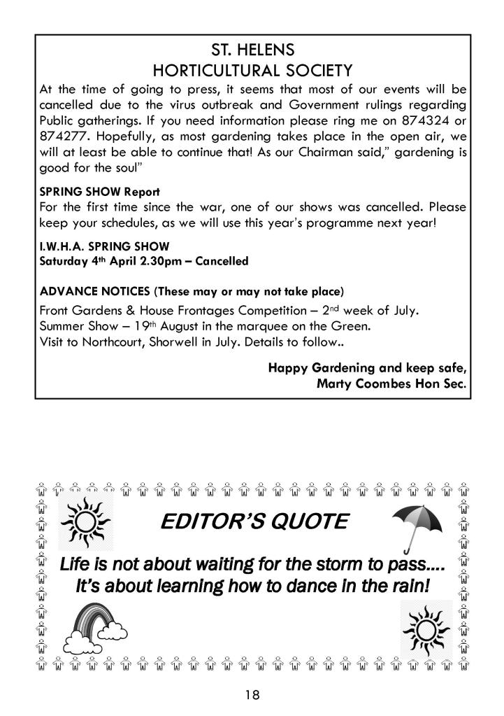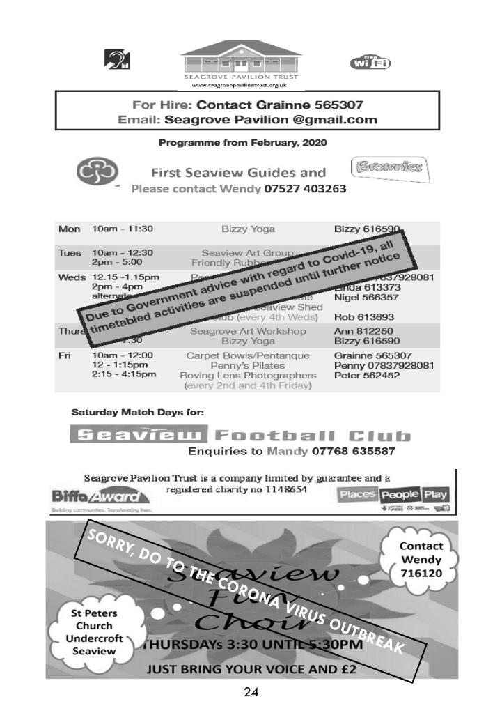 We felt it was really important to get this magazine out as so many people are not on line or are uncomfortable with using it. This edition is FREE and has all the information that people need to stay well and in touch though this really difficult time.