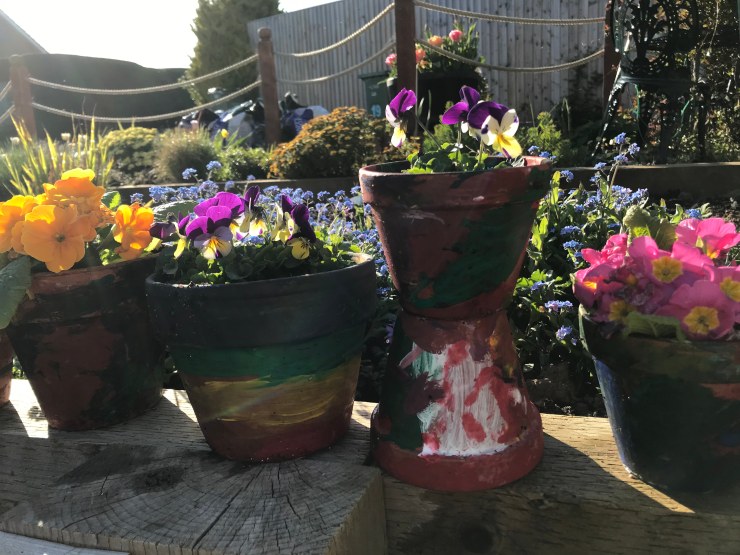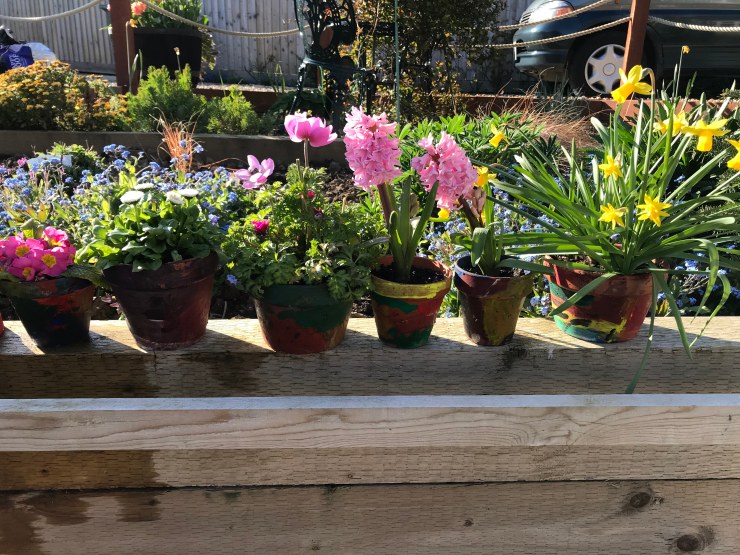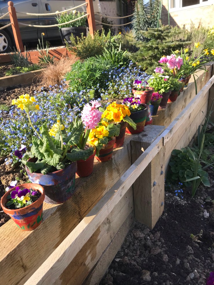 On Good Friday I had a discussion with my 5 yr old grandchild Tessa . She has long know about ‘Jesus crosses’ and this year we talked about death. Earlier last month I had spoken to the children at Nettlestone nursery about how Easter was about death and life and they worked with Julie to decorate the pots and plant the bulbs for the lovely display above. For Tessa and for one little girl in the nursery death was a recent and real event, both had recently lost animals. Tessa had watched an orphan lamb die and the little girl had lost a pet cat. At the nursery she cried as she told us about her cat, and was comforted and cared for by the staff and other children as we encouraged and reassured her, for Tessa there had been the ritual of burial and flowers that she described for me.