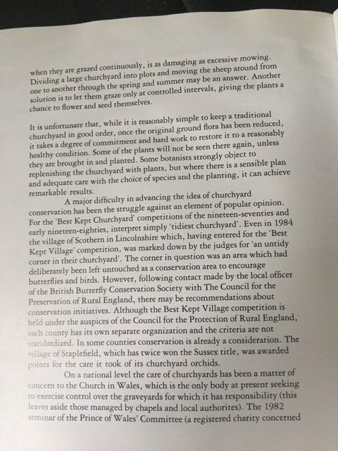 This lively book explains some of the history and also refers to the loss of species in graveyards which I fear may have happened in St Marys. I hope that grazing will help to restore some of the species that we have lost if carefully managed.